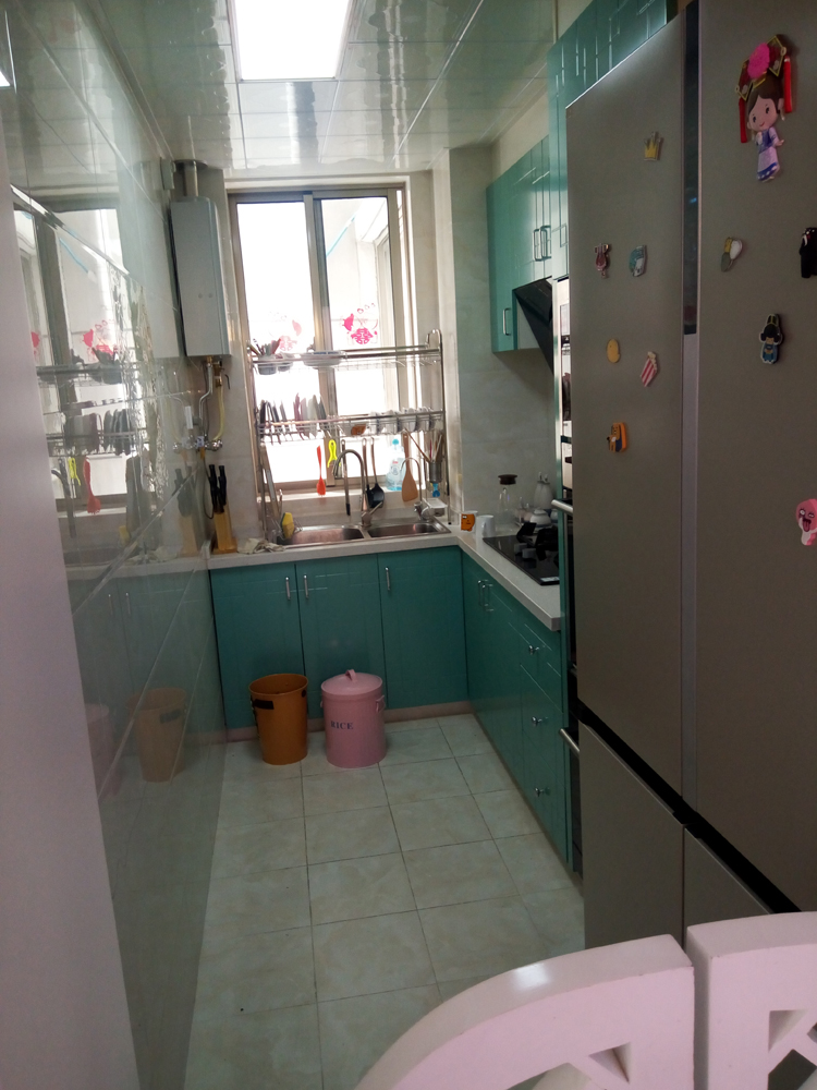 带腰门的厨房。厨房虽然小了点,但是还是一应俱全的!